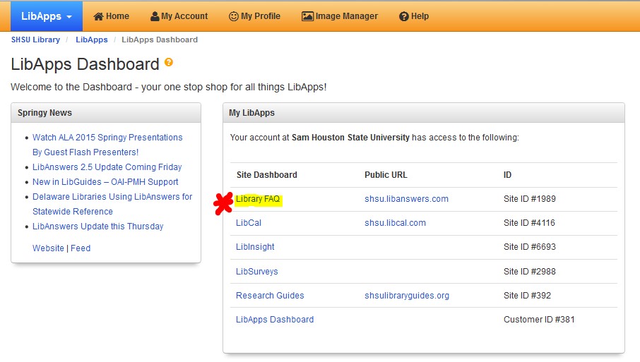 - Navigate to the LibAnswers Dashboard (“LibraryFAQ”)